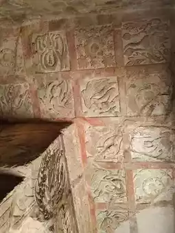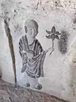 🐉The grottoes mostly use a central pillar structure, and the upper part of the central pillar is often carved with flying figures. The flying figures, wearing fluttering ribbons and freely soaring in the sky, originated in ancient India and were influenced by ancient Greek angel culture, showing a relaxed posture. The decoration on the top of the cave is exquisite, with patterns such as lotus flowers, and the colors are still visible today.
