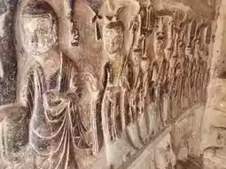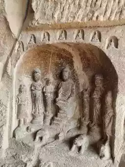 🐉The Gongyi Grottoes were carved during the Northern Wei Dynasty. The Emperor and Empress Buddha Statue tells the story of the Northern Wei monarch and queen worshipping Buddha. The scene is grand and lively, with people in the queue serving the emperor and queen, holding tributes, and going on a pilgrimage. The figures' expressions are mostly smiling, and they are wearing wide clothes and belts, which are typical of the Northern Wei Dynasty.