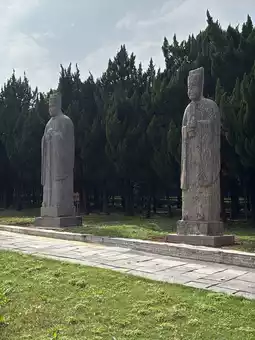 Before entering the mausoleum, you'll see numerous standing stone statues. The statues of civil officials are placed before those of military officials, symbolizing the Song Dynasty's emphasis on military power over civil officials.