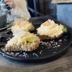 Cafe in Gora Hakone is perfect for breakfast or afternoon tea. The coffee is delicious, but not hot enough, and there are not many types of menu items. There are three types of hot dogs and three types of open-faced sandwiches. For breakfast, we ordered an egg on egg sandwich, which was freshly baked with scrambled eggs and boiled eggs on top, and sprinkled with cheese. Their waiter can communicate in English and is very handsome!