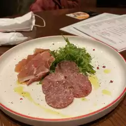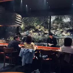 The restaurant environment is very comfortable and the atmosphere is very good. The open kitchen design allows diners to watch the chef grill the food over charcoal. Behind the chef, the glass also allows you to see the view of the small garden, the soft light is very beautiful. It was delicious. We ordered the Kamiyama pork and ham platter, broccoli salad, and the sweetness of the vegetables was very delicious. After that, we ordered the sesame California rice roll and the charcoal grilled pork chop. The pork chop is big enough for 2-3 people to share. And the taste is goodšš», the rich gravy and the aroma of charcoal burst out. There were many foreigners participating during the period, so it's worth going.