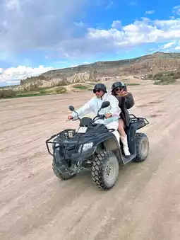 Sunset View Point is a sunset viewing point, just a few minutes from the center of Goreme. This is the same place where you can take a hot air balloon ride. A must-do activity is to ride an ATV to see the surrounding scenery. I must say that it is beautiful, magnificent, and worth the money. Every angle you take a picture from is beautiful. The evening light here is very cheating. It is very beautiful. The price is not expensive at all. It is worth it. In addition to riding an ATV, there are also horses and camels for you to try. As for us, we focus on speed, not relaxation. We chose ATV. It was so much fun. Another highlight is the sunset viewing point. There is a shop selling mulled wine, a local drink that you must try at least once. The taste is considered okay. It is new. I recommend that anyone who comes here must try it. Don't miss it. 🥰