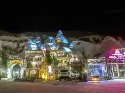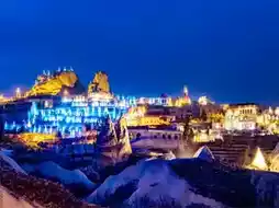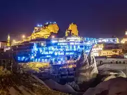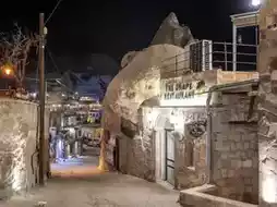 Goreme's nightlife is centered around cave hotels and restaurants, and the ochre-colored alleys, illuminated by lights, create a unique atmosphere. This ambiance is especially captivating during the off-season, when there aren't many people.
