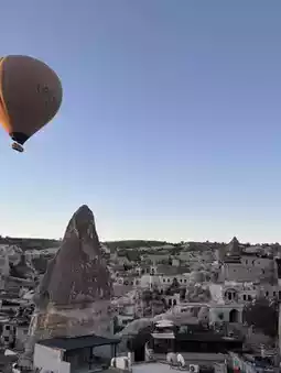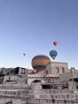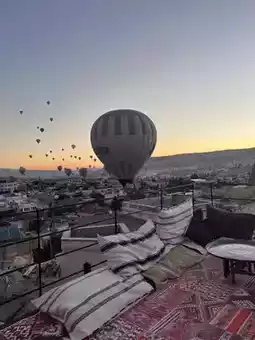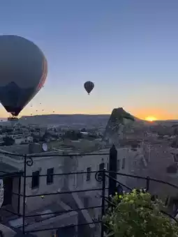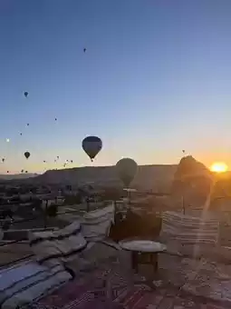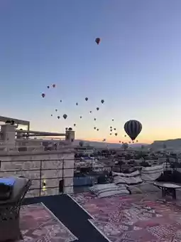 [Cappadocia] Hot air balloons viewed from the rooftop of a budget hotel in Goreme