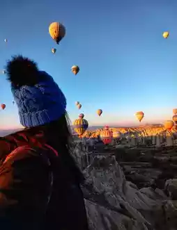 It is best to arrive before the hot air balloons take off. Set off from the hotel at around 5 am and walk for about 45–60 minutes to get there.