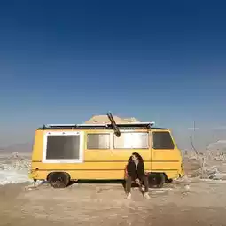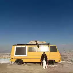 At the top of the hill, you’ll find a cute yellow van set against the backdrop of beautiful mountains and cliffs—a perfect spot for photos!