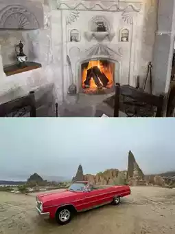 During the two days in Cappadocia, I booked a classic car again. The driver was very emotional and took a lot of photos. Unfortunately, there was no hot air balloon. It started raining halfway through the drive and I was freezing...