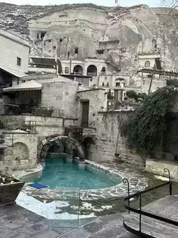 Nestled amidst the mountains of Cappadocia, this cave hotel perfectly blends nature and luxury.