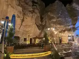 Stroll along the stone-carved streets, where the warm glow of lights reflects off ancient rock walls.