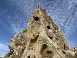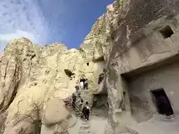 The Goreme Open-Air Museum is located within the Goreme Valley and features over 30 rock-cut cave churches adorned with exquisite frescoes. During this visit, only the Apple Church and Snake Church were explored. Photography is prohibited inside the caves, and many frescoes have been damaged. Numerous icons have had their eyes gouged out, and there are even graffiti-like carvings left by visitors.