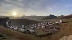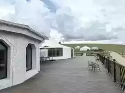 6. The resort is built against the mountain, and the gers on the grassland are like white pearls under the blue sky, scattered on the green grassland. Stepping out of the ger, you will see the vast grassland, with green grass and blooming flowers. Here, you can put down your phone, run freely, breathe fresh air, and feel the vastness of the grassland and the power of nature.