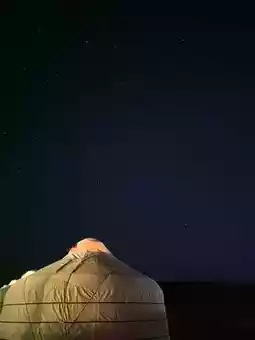 8. As night falls, the ger is brightly lit, and the starry sky on the grassland is dazzling, like pearls bestowed by heaven. Sitting at the door of the ger, looking up at the starry sky, makes people feel relaxed and happy, as if they are in a dreamlike paradise.