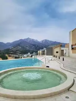 The infinity pool that can be used even by non-guests was especially popular throughout the winter with the view of Ulsanbawi's snowscape,