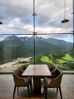 💛 I planned a trip to Gangwon-do because I wanted to visit this place. I opened on Saturday because I heard that the morning photos come out pretty. The coffee is expensive, but I think it's worth the view!! The Ulsanbawi-shaped dessert was delicious. As the opening time passed, there were more people and it was crowded, but it was healing itself to stare blankly at the view of Seoraksan Ulsanbawi. When it snows in the winter, I plan to plan a trip to Gangwon-do again and go there:)