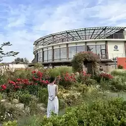 The cafe is like a tourist attraction itself! It was great to take pictures or rest while enjoying the trip in the large garden created by the sea👍
