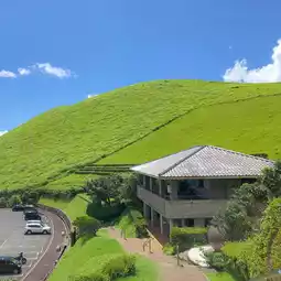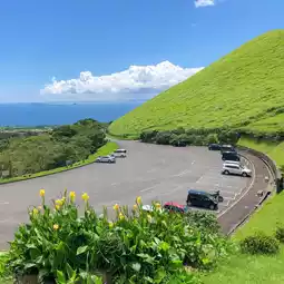 The entire volcano is covered in grass, and on a nice day, you can take wonderful photos surrounded by nature with the sea in the background 🤳