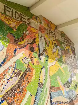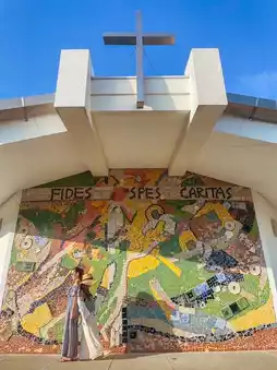 [Goto Islands] A beautiful church with holy pictures painted with mosaic tiles