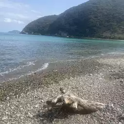 It is surrounded by mountains and the sea is clear blue-green, making it a truly unexplored place.