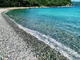 The surrounding green mountains are beautiful, and you can enjoy the atmosphere of a private beach.