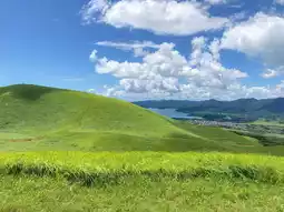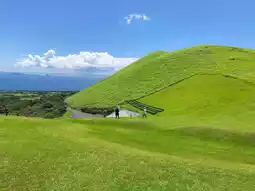 Oni-dake, located in Nagasaki Prefecture's Goto Islands, is a stunning volcano covered in lush grasslands.