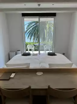 The rooms are simple and warm in design, and all rooms have an ocean view.
