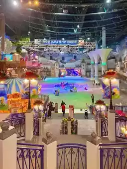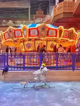 Photo zones and sledding slopes everywhere, various types of sleds, wide and long ice rinks,