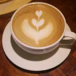 It's a coffee shop that boasts direct-fired roasted coffee beans~