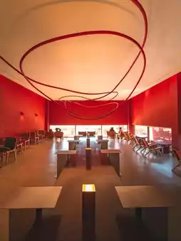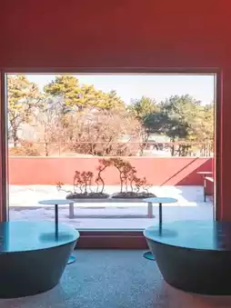 The architectural art felt from the entrance of Discape makes you feel like you're at an exhibition. Inside the cafe, the sensual frame, the full-length window view illuminated by sunlight, and the 3D sculptures installed on the ceiling blend well with the interior colors to create a wonderful space. The quiet atmosphere felt on the second floor was an impressive space.