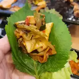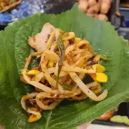 You should eat the samgyeopsal wrapped in vegetables and namul!
