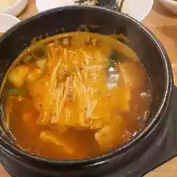 This is a popular daegi kalbi restaurant, and it's close to Seoul, so the restaurant is large and crowded with customers.