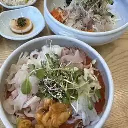 - The next morning: Sokcho jar raw fish / I ate raw fish and raw fish rice bowl and it was so delicious! The basic side dishes and settings were delivered by a machine made by KT, so it was fun to watch ㅋㅋㅋ