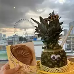 - After dropping off my luggage at the hotel and going to see Sokcho Eye, I went to a nearby cafe called ONE FINE DAY, where they sell a Ferris wheel-shaped bread and signature menus as a set! The cheese bread was also delicious!!