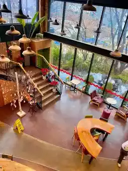 There's a parking lot inside the cafe, so it's easy to visit by car, and especially the 1st and 2nd floors