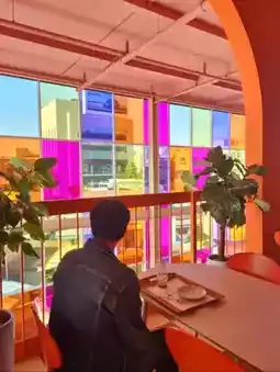 🎨A large, colorful cafe with a gorgeous interior