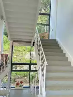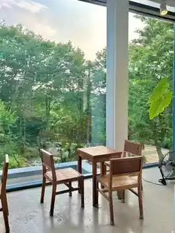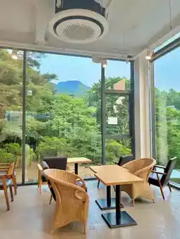 I'll introduce you to a cat cafe with a beautiful green view through a large window building.🤗