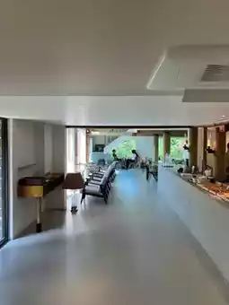 A large cafe with a 2nd floor space with a spacious and various seats on the 1st floor