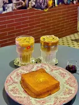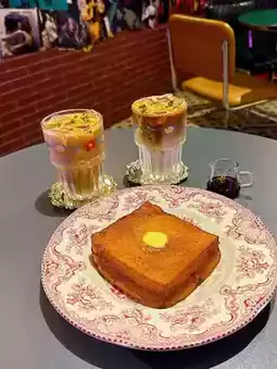 I found a cafe that really feels like Hong Kong~~ It really feels like Hong Kong~I went to Hong Kong this year and it's the same feeling I had back then~~, I had Hong Kong milk tea and Hong Kong toast, and the harmony of the toast and milk tea was beautiful~ The toast is not the toast type sold in the market..