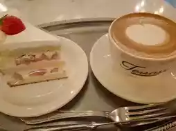 Enjoy the unforgettable Parisian European atmosphere with a classic 🍓 strawberry 🎂🍰 cake and Oatly Latte coffee at La Terrasse de Paris for the New Year. 🥰 This cafe boasts a warm atmosphere, warm lighting, and a truly beautiful interior. The signature 🍓 🍰 is delicious, and the rich, fragrant aroma of oat-based coffee washes away any fatigue. 🫠😄