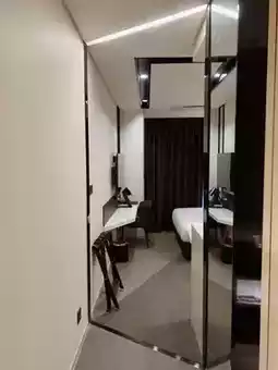 I stayed in a standard double room, and the room condition was better than I expected! The wine-colored curtains added a luxurious feel *,*