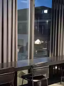 The space is wide so it's good for several people to come, and you can see the green trees outside the window so you can enjoy it comfortably.