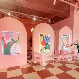 As you can see from the photos, this café is overflowing with pink and is absolutely adorable! The interior is filled with artistic paintings, creating a fun and enjoyable space wherever you look❣️