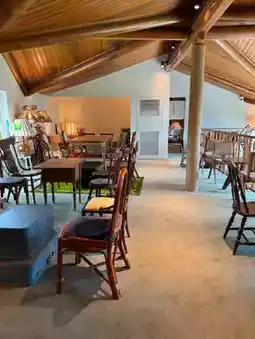 The exterior resembles a cabin nestled in the woods, while the antique-inspired, luxurious interior leaves a lasting impression✨.