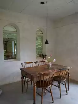 The interior is decorated with a planter design, creating a stylish atmosphere.