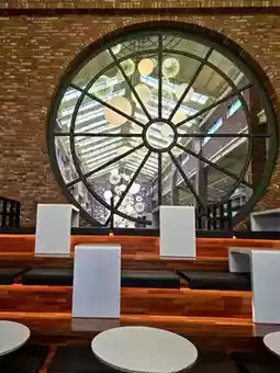 In addition to couples' seating, group seating, and spacious tables, the space offers a variety of seating concepts, including a shoe-free seating area (featuring a duplex loft) and tiered seating with views of the central forest.