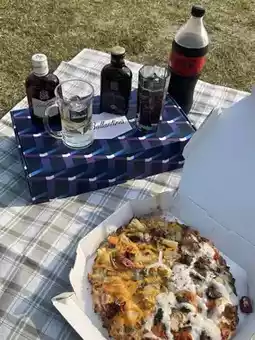 A combination of hamburgers, pizza, and highballs that I had never thought of,