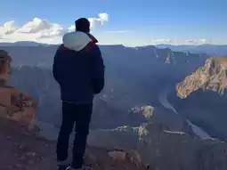 In conclusion, I had to rent a car by the day. I asked at the lobby and got a late rental car without being prepared for driving in America this time. Luckily, I already had an international driver's license, so I decided to go. Driving and using the map by myself took about 3-4 hours, but it was the best time while driving. We got to see the beauty of nature up close. Driving and parking to take pictures along the way was a very special moment. And when we arrived, we were very impressed with what we saw in front of us: a steep cliff that was as grand as the rumors of the Grand Canyon. It is another beautiful and impressive place.