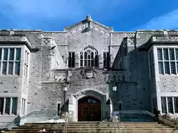 Near the intersection of Main Mall and University Boulevard, the iconic building was designed by Japanese architect Toshihiko Kimura, integrating Eastern and Western elements. The "Meditation Pond" in the central square was inspired by the dry landscape of Ryoan-ji Temple in Kyoto. The library has a large collection of Chinese, Japanese and Korean literature.