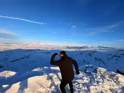 Mr. Chen drove me to the south of Iceland for 5 hours today. It is a very famous Golden Circle attraction in Grímsnes in southern Iceland. Kerið Crater attracts many photographers every year. The scenery is so beautiful that every shot is a masterpiece (laughing). The beautiful crater lake was formed by a volcanic eruption 6,500 years ago. It is oval in shape and is about 270 meters long, 170 meters wide and 55 meters deep. It is quite spectacular when you walk up to the top of the mountain. It is completely covered with snow in winter. Due to minerals, the lake surface will appear blue-green in summer. It will look a bit like the eyes of the Japanese witch Okama. You can walk along the trails on the top of the mountain or by the lake. Some places between going up and down the mountain are very steep and not easy to walk. And some ice surfaces are very easy to slip. It is recommended that you wear snow boots or prepare crampons in winter. If you drive yourself, the parking lot of the crater lake is free. But remember to pay the entrance fee at the ticket booth before visiting the crater lake (ISK750 per person). After paying the fee, enter the fence to start the visit.