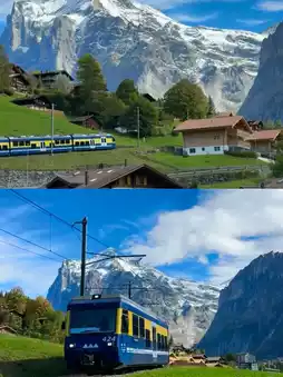 The air was sweet! It was a day of having Swiss mountain lungs! The little mountain train shuttled in front of the snow-capped mountains, making me feel like I was in a painting 🌍