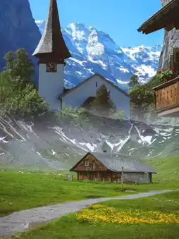 📍Grindelwald: Also located in the Bernese Highlands, it is known for its idyllic scenery. The town is surrounded by snow-capped mountains and meadows, and is home to the famous First Cliff Walk by Tissot. Visitors can enjoy hiking, paragliding, and other outdoor activities here.